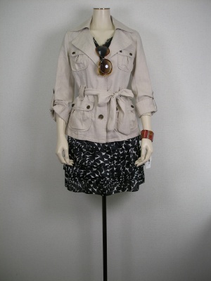 | 流行のサファリージャケットにはデニムも良いですが、こんなスカートならちょっとセレブな雰囲気に!エレガンス度60%、スタイリッシュ度40%。 |
