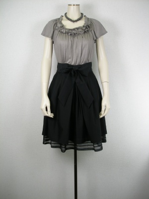 ウエストマークをギュッとマークしたリボン付きスカートは、エレガントで華やかですね。トップスは軽めのカットソーでも胸元とディテールが凝ってお洒落。お義母様とのお出かけにぴったり!エレガンス度100%。