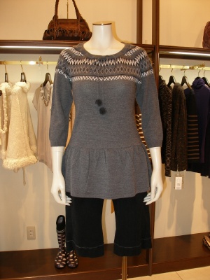 ニットチュニックの切替が可愛いですね。アウトドアの季節にピッタリです!アクティブ度80%、フェミニン度20%。