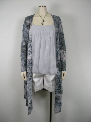 ショートパンツに羽織るならロングカーディガンがお勧め。スポーティなショートパンツが大人っぽくなります!スタイリッシュ度70%、エレガンス度30%。