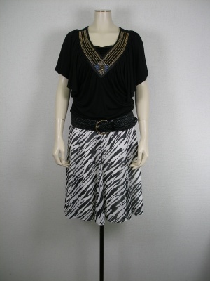 小悪魔っぽいドレープカットソーとゼボラ柄でちょっと強気に!でも、やわらかな上質素材で上品さもキープ!エレガンス度70%、スタイリッシュ度30%。