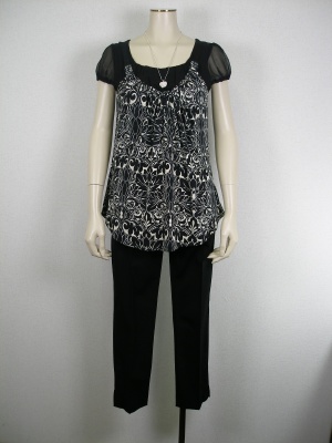 黒のシースルーは夏、涼しげに映ります。ラクチンな日常着も素材次第でエレガントに!エレガント度60%、スタイリッシュ度40%。