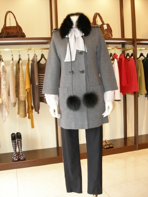 モノトーンのレトロすタオルはバッグで色をプラス。きちんとしたイメージなのでティペットはあえて結ばずに!スタイリッシュ度70%、フェミニン度30%。