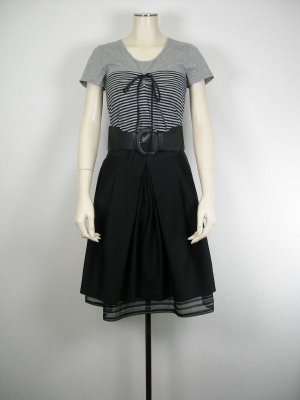 流行りのマリンをエレガントに着るなら、黒×グレーでシックに。クラシカルなイメージです!エレガント度70%、フェミニン度30%。