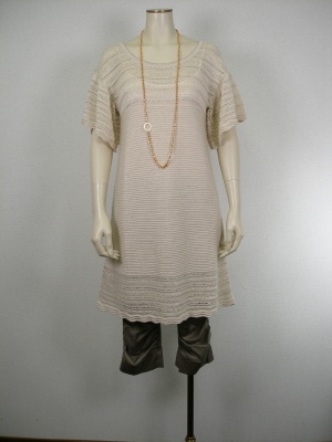 ニットワンピをシャリーングパンツでカッコよくレイヤード。華奢なロングネックレスならカジュアルすぎずスタイリッシュに!スタイリッシュ度70%、フェミニン度30%。