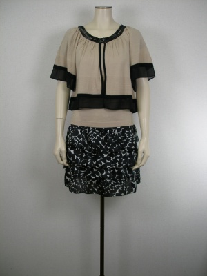 シフォン使いがエレガントなニットをアンサンブルで。インナーが長めなのでスカートは短めに!エレガント度80%、スタイリッシュ度20%。