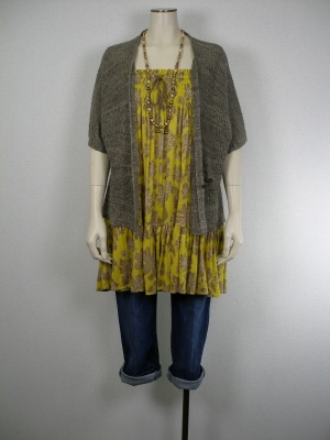 リラックスしたスカートをチュニックとして活用。ナチュラル素材のカーデでリゾート気分!アクティブ度100%。