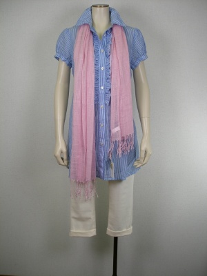 シャツスタイルもパステルカラーならフェミニンな雰囲気に。シャツチュニックはさりげなく体型カバーしてくれますよ!フェミニン度70%、スタイリッシュ度30%。