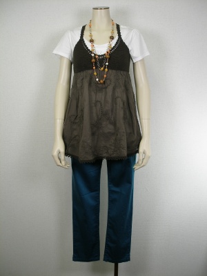 ふんわりシルエットのキャミソールは、インにTシャツを重ねて。動きやすて キュートなコーディネートは、男の子ママにもオススメです!アクティブ度90%、フェミニン度10%。