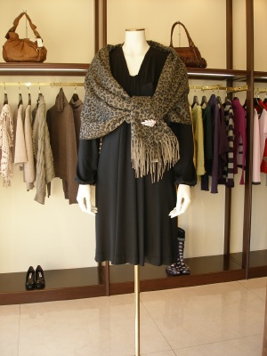 カットワンピースは着心地が大事。シンプルなゆえにストールをポイントに!エレガンス度100%。