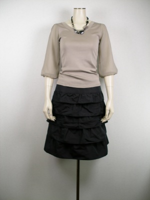 人気のティアードスカートをシックなカラーリングでまとめました。バルーン袖のカットソーでクラシカルな雰囲気に!エレガンス度80%、フェミニン度20%。