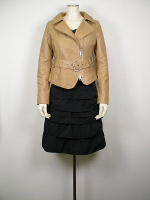 ライダースジャケットも柔らかな羊皮とコンパクトなデザインを選べば女らしく決まります。ティアードスカートでエレガントに!