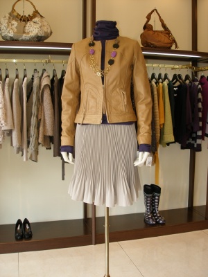 皮革は羊革を使用しているライダースJk。とても柔らか。この秋は革もどこかに取り入れたいですね!スタイリッシュ度90%、フェミニン度10%。