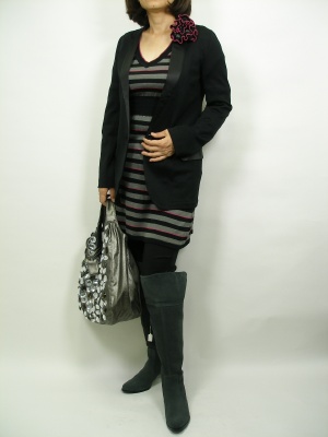 ミニワンピにはロングジャケットがベストマッチ。女性受けするモードな可愛さです!スタイリッシュ度90%、フェミニン度10%。