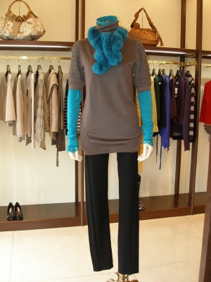 レギンスもゴムになっててはきやすい。ニットの袖が透かし編みになってストールとカットソーの色をリンクしてみました!アクティブ度90%、スタイリッシュ度10%。