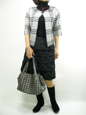 チェックのジャケットを主役にした甘口お出かけスタイル。色をモノトーンでまとめれば「全身甘」も大人っぽい!フェミニン度100%。