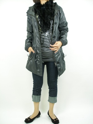 お天気の良い日はお子様と公園へ。カジュアルな軽いコートが便利でオシャレですね!アクティブ度100%。