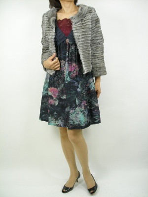 大きく開いた胸元のデザインがオシャレなワンピースは、ファーボレロを持とうとお出かけにぴったり。ミュージカルでも観たいファッション!エレガンス度100%。