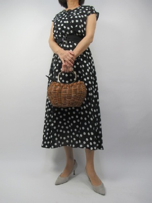 水玉のどこか懐かしさを感じる一着。ミモレ丈の上品な丈感がオシャレ度をUPさせてくれます。さらっとした生地は家で丸洗いできるので夏のお出かけにも十分使えますね!