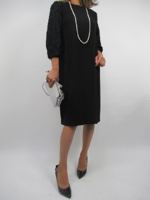 丈だけレースになったお洒落ワンピース。黒なのでちょっとした席にもピッタリ。夏のお出かけもレースなので重くならず上品にまとまります。シルバーのバッグをアクセントに!