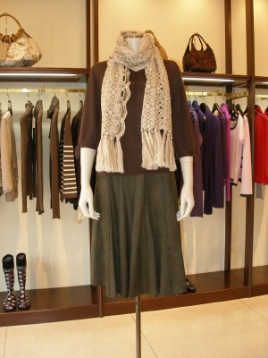 ベーシックなブラウン系のコーディネートにマフラーが映えます!フェミニン度80%、スタイリッシュ度20%。