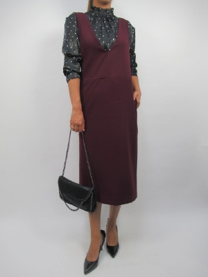 幼くなりがちなジャンスカはタイトのシルエットでさらに色は秋の旬なボルドーカラーをチョイスするとオシャレ!