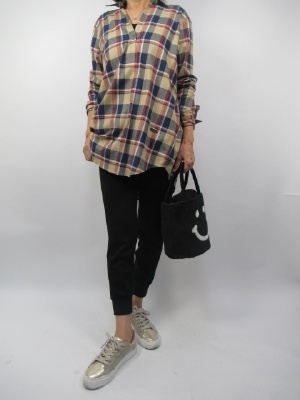 シャツ人気も今年はチェック柄がいい。丈長のゆったりシャツはざっくり着こなすのがいい。ドロストパンツでさらっと着こなせばアウトドアや運動会ファッションにピッタリなコーデに!