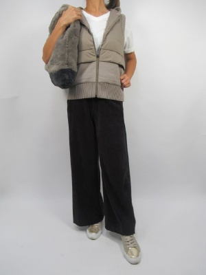 運動会や秋のアウトドアには動きやすいワイドパンツに半袖カットソーがオススメ。そしてトップスには半袖の上にダウンベストを投入するだけでおしゃれなカジュアルコーデになる!