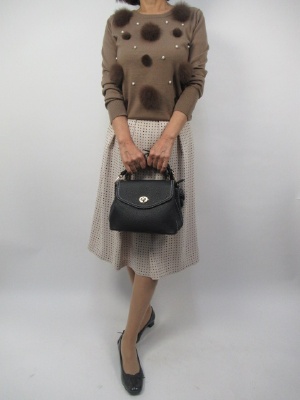 | ドットのシフォン地スカートはオーソドックスなデザインで甘口コーデには欠かせない一着。合わせたニットは大きなファーのポイントがおしゃれな一枚を合わせてみました! |