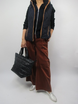バギーパンツにパーカだけでもカジュアルコーデになりますがもう一つベストを加えてよりカジュアルなコーデにさせました運動会や秋の行事にピッタリなコーデ!