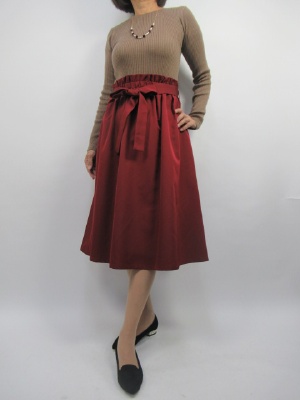 リブニットと人気のボルドー色を組み合わせたドッキングワンピース。一枚着でとても楽ちんなのにしっかりオシャレなデザインとなったワンピースはお出かけにピッタリ。薄手のリブなので上に羽織りやすいです。ウエストリボンがメリハリ効果ありですっきり見えます!