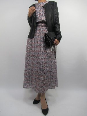 革のライダースジャケットは黒がかっこいい。でも少しハードになりすぎてしまうので、女らしいロングのワンピースに合わせてみました。ヤギ革の柔らかな質感は身体にフィットしてとても着やすい野が特徴!