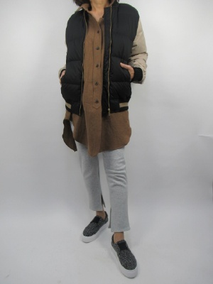 レギンスファッションが多く見なれる中でそろそろ暖かめの生地のものがほしいとのお声に合わせて裏起毛のレギパンでコーディネート。ザックリしたシャツに暖かいレギパンでゆるっと合わせて!