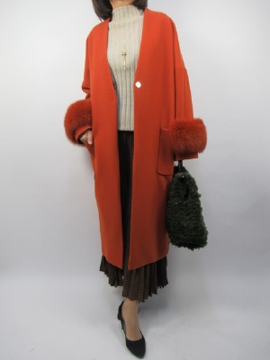 ベーシックな色を選びがちになるアウターこそ綺麗色をチョイスしたい。冬だからこそコートでオシャレして差を付けたい。袖口のファーも同色でエレガントさをプラスしたロングコートで冬のお出かけを楽しみたい!