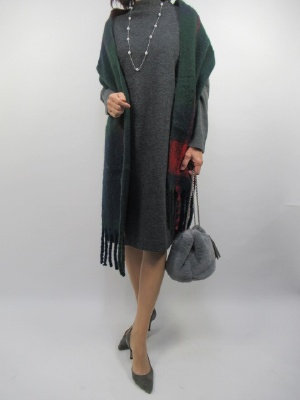 Aラインのエレガントデザインのニットワンピースはキチンと感が感じられてお出かけスタイルにピッタリです。あえてカジュアルなマフラーでアクセントを作って少し遊びを入れてみました!