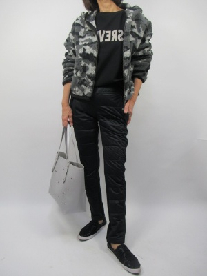黒をベースにグレー系のアウターをポイントにワントーンでシックに合わせてみました。パンツは前にダウンが入ったとても暖かいパンツ。アウトドアにも最適なカジュアルコーデです!