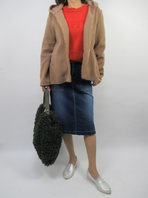 ふんわり軽い素材で着ていても楽な、それでいて暖かくオシャレな一枚はカジュアルコーデの強い味方。タイトデニムスカートで女らしさをプラスしたカジュアルコーデ!