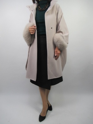 長めの丈のポンチョはエレガントコーデにピッタリ合います。淡い色も手伝って華やかさをプラスしたお出かけコート。トップスとスカートを少しダーク系な色にすることでコートの印象がぐんとアップしてより華やかさが増します!