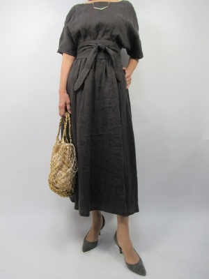 ウエストのサッシュベルトでスカートの部分の広がりを強調したお出かけワンピース。素材は洗える麻100%。ソフトな素材は肌のなじみも良く一枚で完成するスタイリングがワンピースの良いところ!エレガンス度80%、フェミニン度20%。