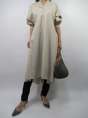 Aラインのビッグシルエットが特徴のシャツワンピ。細身の黒デニムで引き締めてコーディネート。襟をぬいて着こなすと、なお一層オシャレ度アップ!スタイリッシュ度80%、アクティブ度20%。