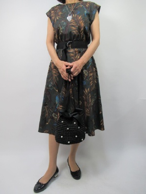 ウエスト切り替えで太いベルトをくっと締めるエレガントライン。綿素材でうち洗いOKのお出かけワンピースはこれからの季節にとても重宝!エレガンス度80%、フェミニン度20%。