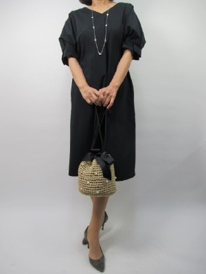お出かけが多くなる季節。一枚でオシャレになるワンピースはとても重宝。ベーシックなネイビーに小物でアクセント。おうち洗いできる一着です!エレガンス度90%、フェミニン度10%。