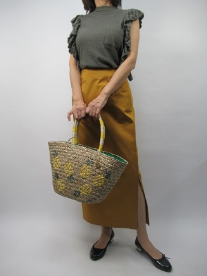 タイトスカートもカジュアル素材のロングタイプをデイリーに使うには、とっぷすに柔らかさを出してメリハリを付けると良い。大人っぽいデイリーファッションなのでここはノースリーブで決めたい!アクティブ度60%、スタイリッシュ度40%。