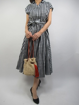 マキシ丈のワンピースは今年の特徴。ウエストリボンでメリハリを付けたワンピースは夏のお出かけにオシャレ度が増します。ギンガムチェックもこのくらい太さだと華やかになりますね1エレガンス度70%、フェミニン度30%。