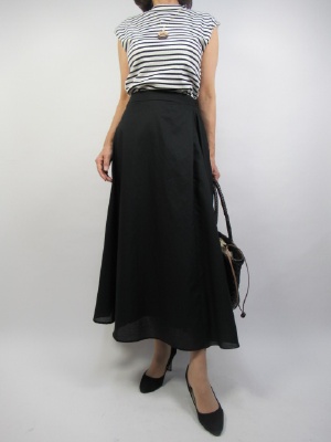 ボリュームのあるスカートにノースリーブのカットソーを合わせる。トップスをコンパクトにすることでスッキリ見せることができます!スタイリッシュ度80%、エレガンス度20%。