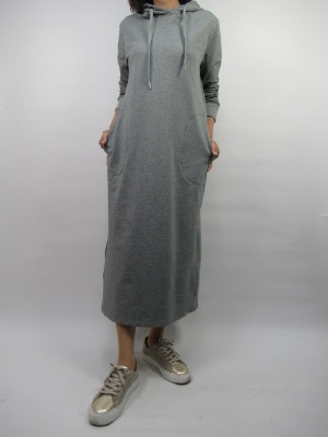ロングのワンピース。スウエット地のパーカタイプは秋に注目したいアイテムの一つ。カジュアルに、でもお洒落にに普段着っぽく見えないデイリーファッションを!アクティブ度100%。