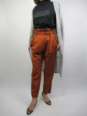 流行りのテラコッタ色のパンツに深い色のネイビーを合わせて涼しく秋気分を楽しむコーデ!スタイリッシュ度60%、アクティブ度40%。。