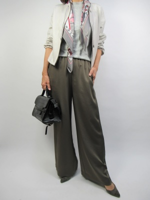 フェイクスエードのジャケットはこの時期から出始めます。コンパクトなシルエットはワイドパンツとの相性が良い。通勤などのオンタイムに早目から取り入れたい一枚!スタイリッシュ度80%、エレガンス度20%。
