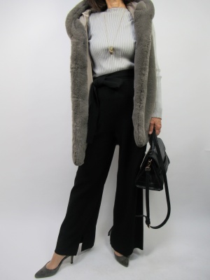 ワイドデザインのニットパンツ。とても着やすくてカジュアルダウンのイメージが強いニットパンツをベストに合わせてお洒落に着こなしてみました!スタイリッシュ度80%、エレガンス度20%。