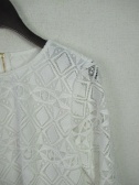 スクエアデザインブラウス 生地はレース身ごろのみ裏地 背の部分中間までゴールドのファスナー 袖は普通の筒状 七分袖 共のスカート紺だけ有ります